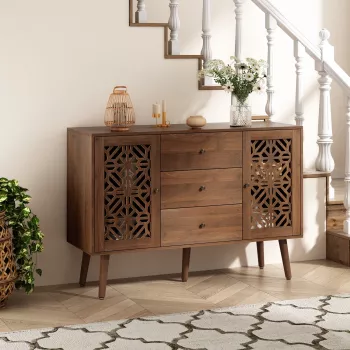 48″ Retro Hollow Carved Sideboard Buffet Cabinet with Drawers and Doors